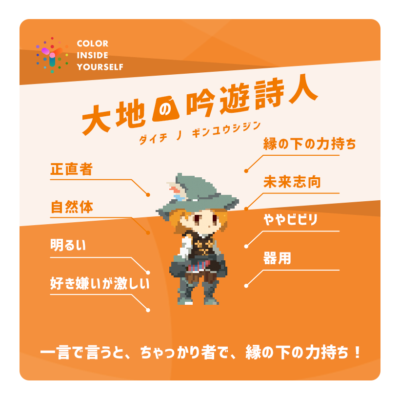 目立ちたがり屋ではないものの、最後に笑うのは私!「大地の吟遊詩人」は、楽天的な考えを忘れずに何でもそつなくこなしていくタイプです。
