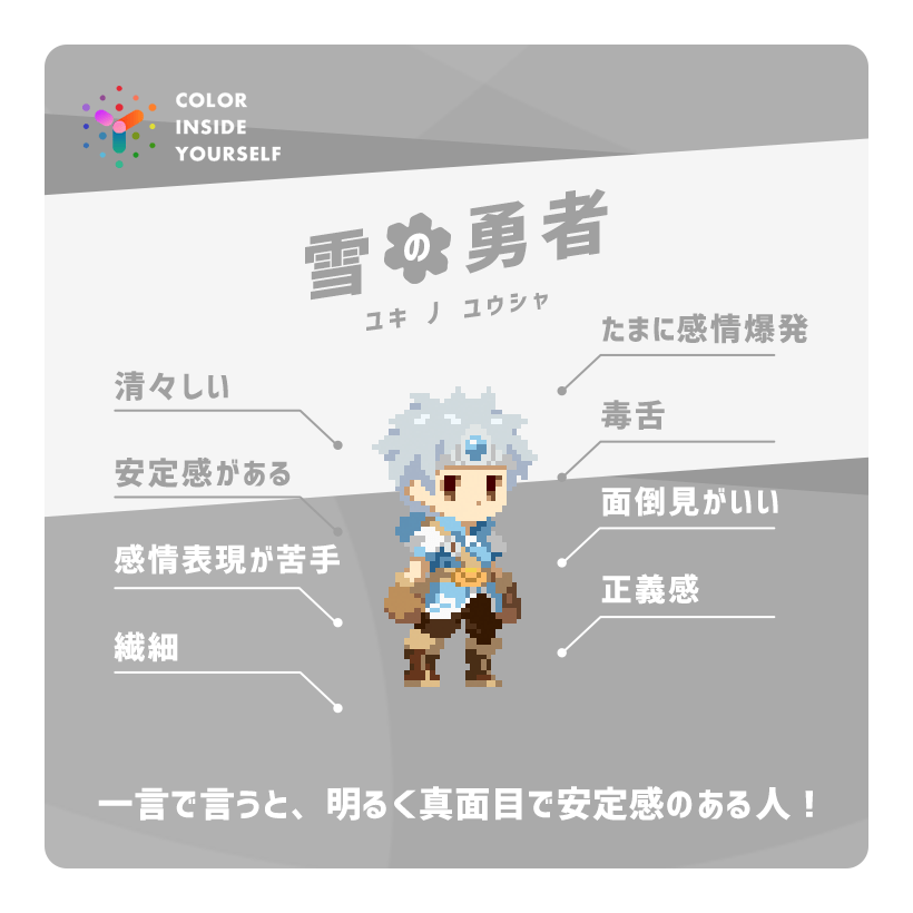 - @ciy_info #雪の勇者 #CIYでマイトーテム生成 #ドット絵 #性格診断